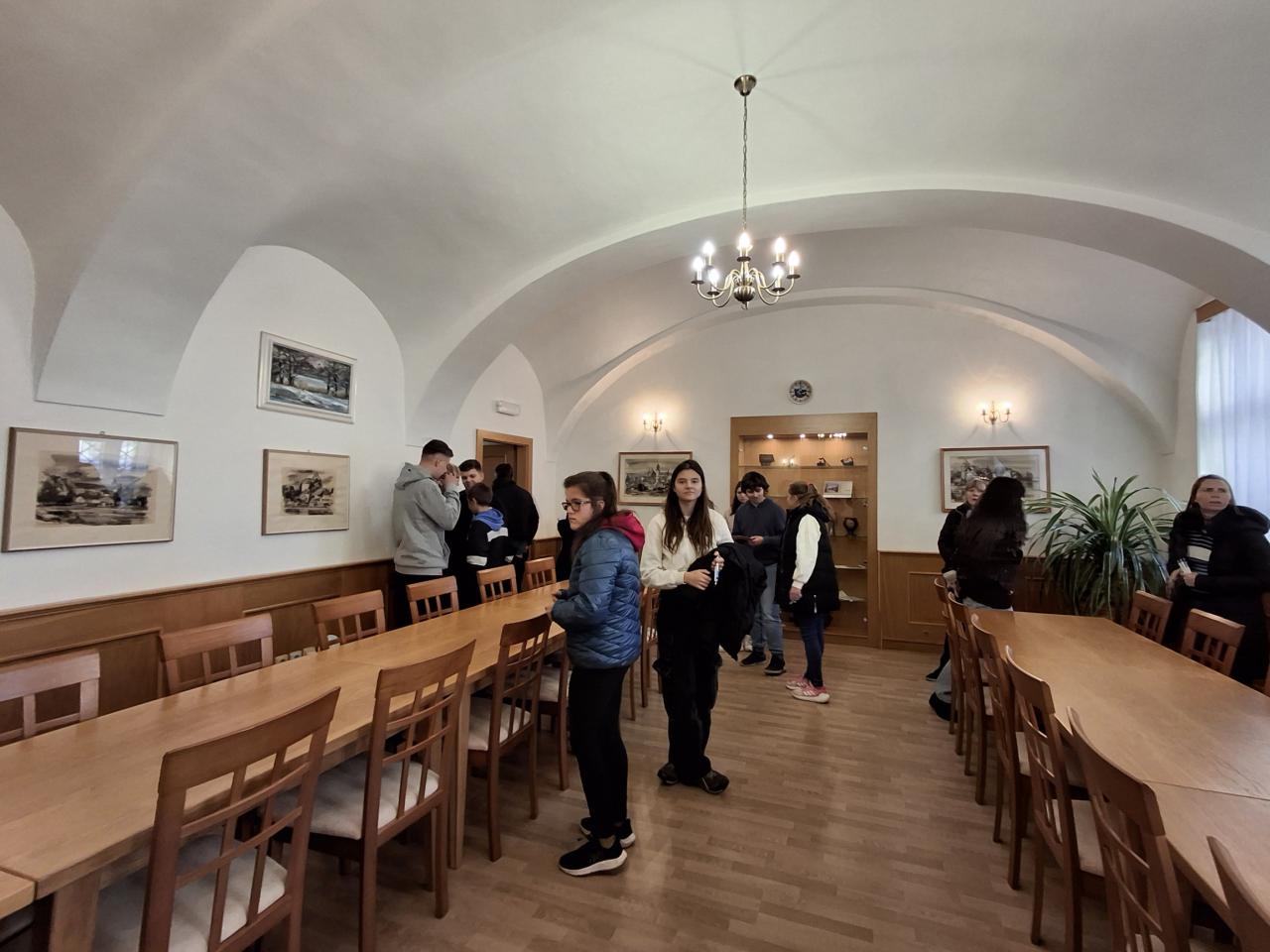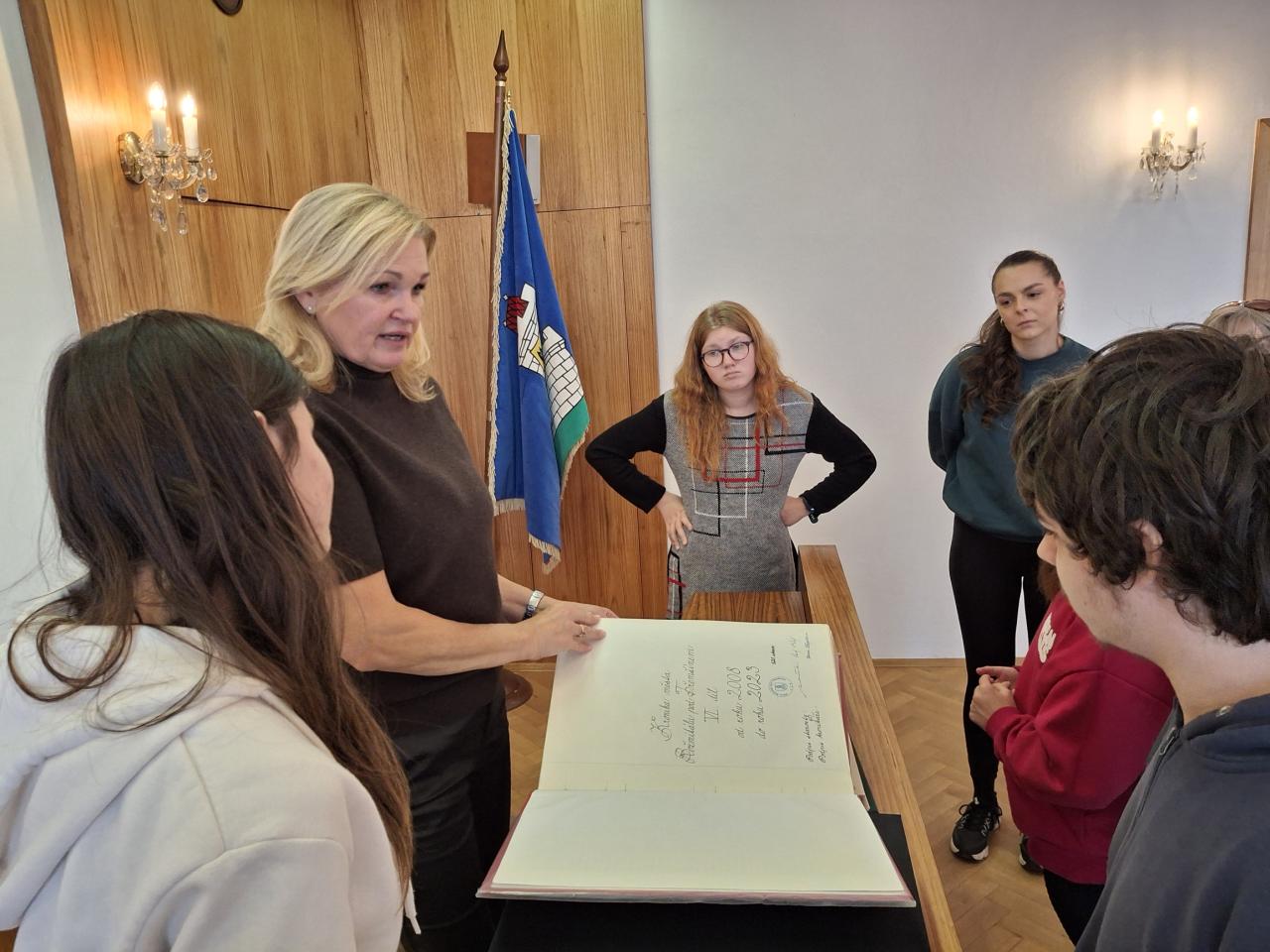 V úterý 21. 10. nás na rožmitálské radnici srdečně přivítala matrikářka paní Renata Sklenárová. Dovedla nás do obřadní síně a ujala se slova. Překvapil nás zrenovovaný interiér a výzdoba této místnosti; prozkoumali jsme také detaily obrazů. Paní Sklenárová objasnila žákům význam matriky, jaké tu probíhají obřady, ukázala staré matriční knihy, vysvětlila některé zákonitosti a pravidla zápisů. Děti měly možnost si knihy prohlédnout; podivovaly se nad tvary písmen, zkusily si i některé zápisy přečíst. Také jsme viděli Kroniku města a našli jsme kapitolu o naší škole. Žáci měli různé dotazy, takže došlo i na povídání o historii radnice, o funkci starosty, o zastupitelstvu, o volbách; nakonec jsme si prohlédli i zasedací místnost, kde se konají schůze. Dvě hodiny zajímavého vyprávění utekly, ani nevíme jak. Rádi bychom tímto poděkovali paní Sklenárové za čas, který nám věnovala, za vstřícnost, ochotu a praktické informace, které žáci uplatní v další výuce.